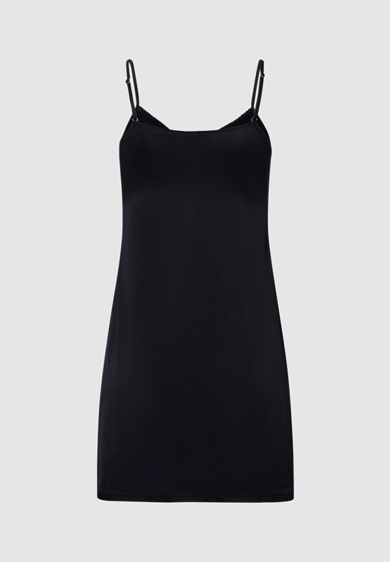 This simple and stylish bodydress features adjustable spaghetti straps for a custom fit and a gentle V-shaped neckline. Made from a blend of viscose and elastane that feels incredibly soft against your skin. Versatile enough to wear as a slip underneath your clingy dresses or as sleepwear.